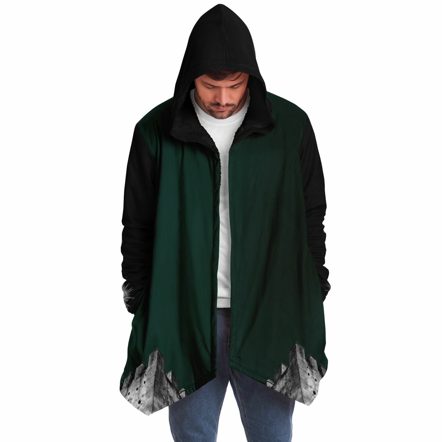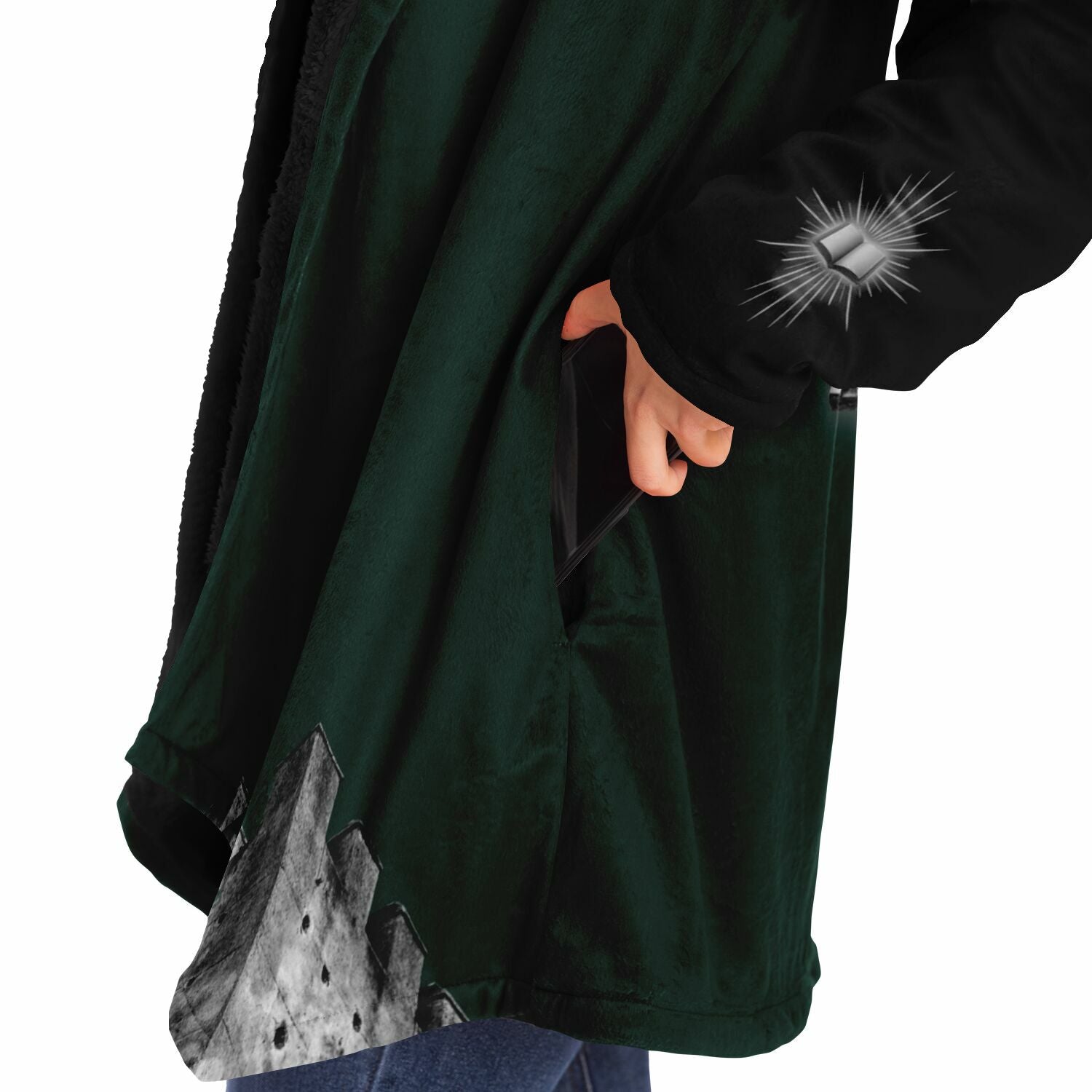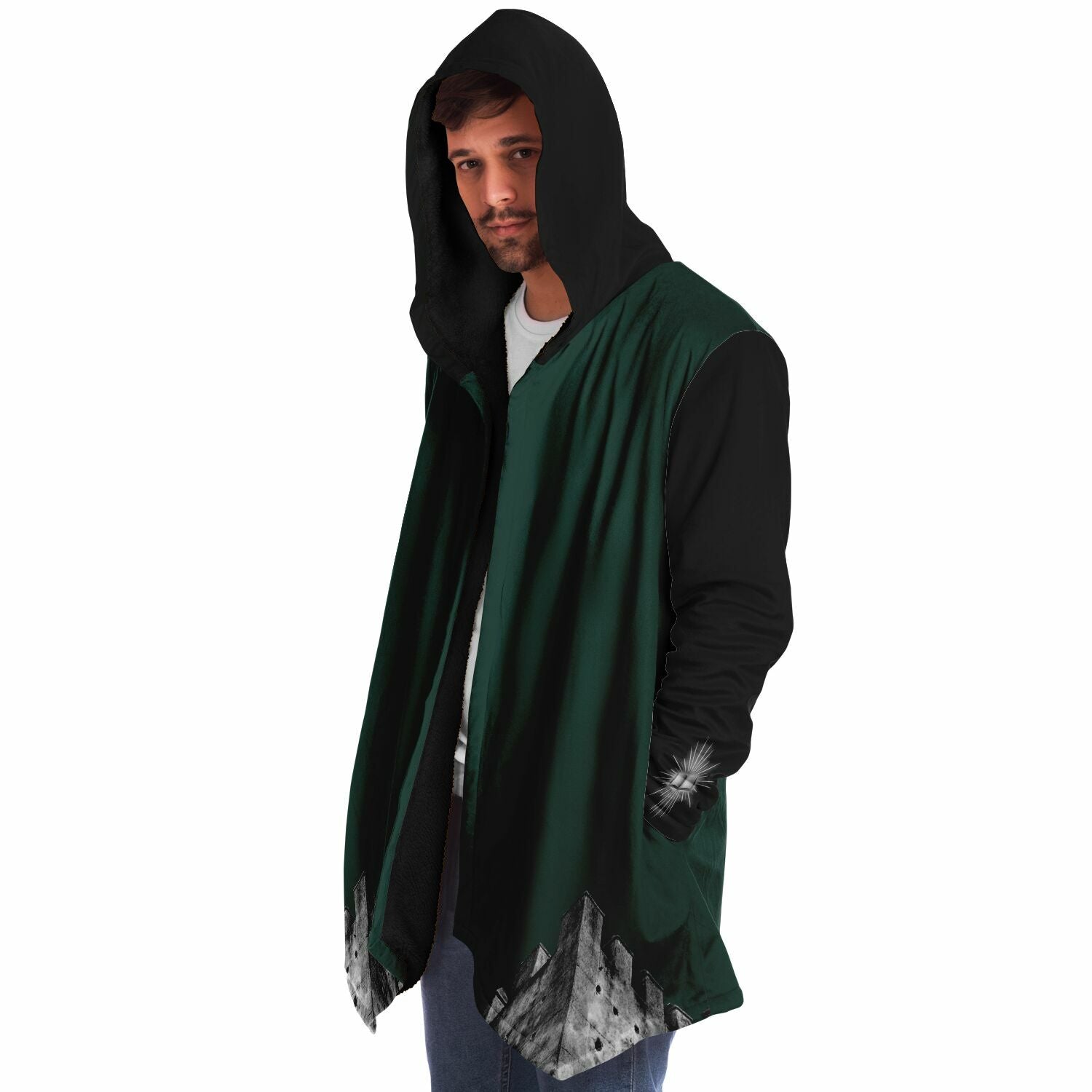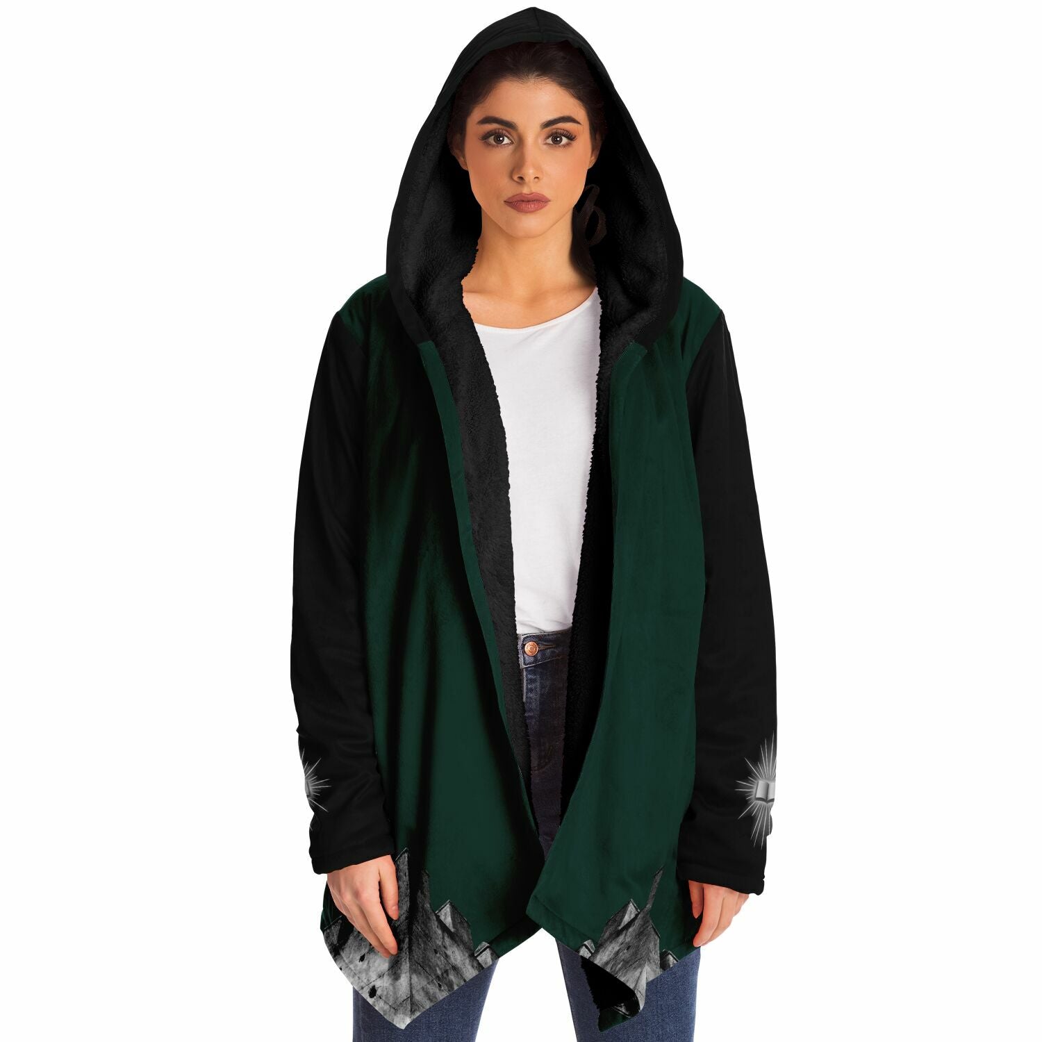 This luxurious cloak is made from an ultra-soft premium microfiber fleece lining. The outside is made with a micro-mink polyester fabric that allows the print to be high definition with vibrant colors. Featuring two deep side pockets to keep your belongings safe and your hands warm.