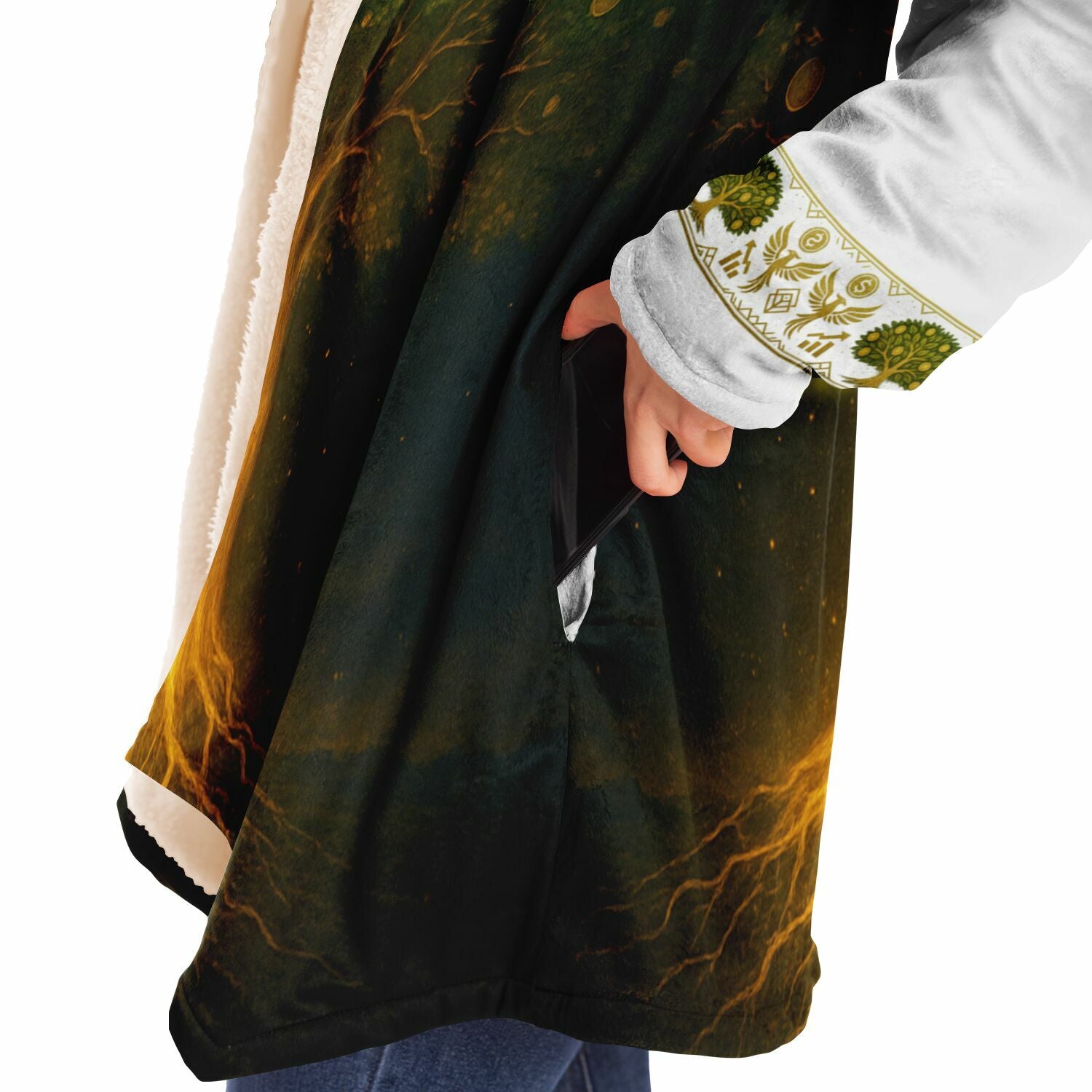 This luxurious cloak is made from an ultra-soft premium microfiber fleece lining. The outside is made with a micro-mink polyester fabric that allows the print to be high definition with vibrant colors. Featuring two deep side pockets to keep your belongings safe and your hands warm.