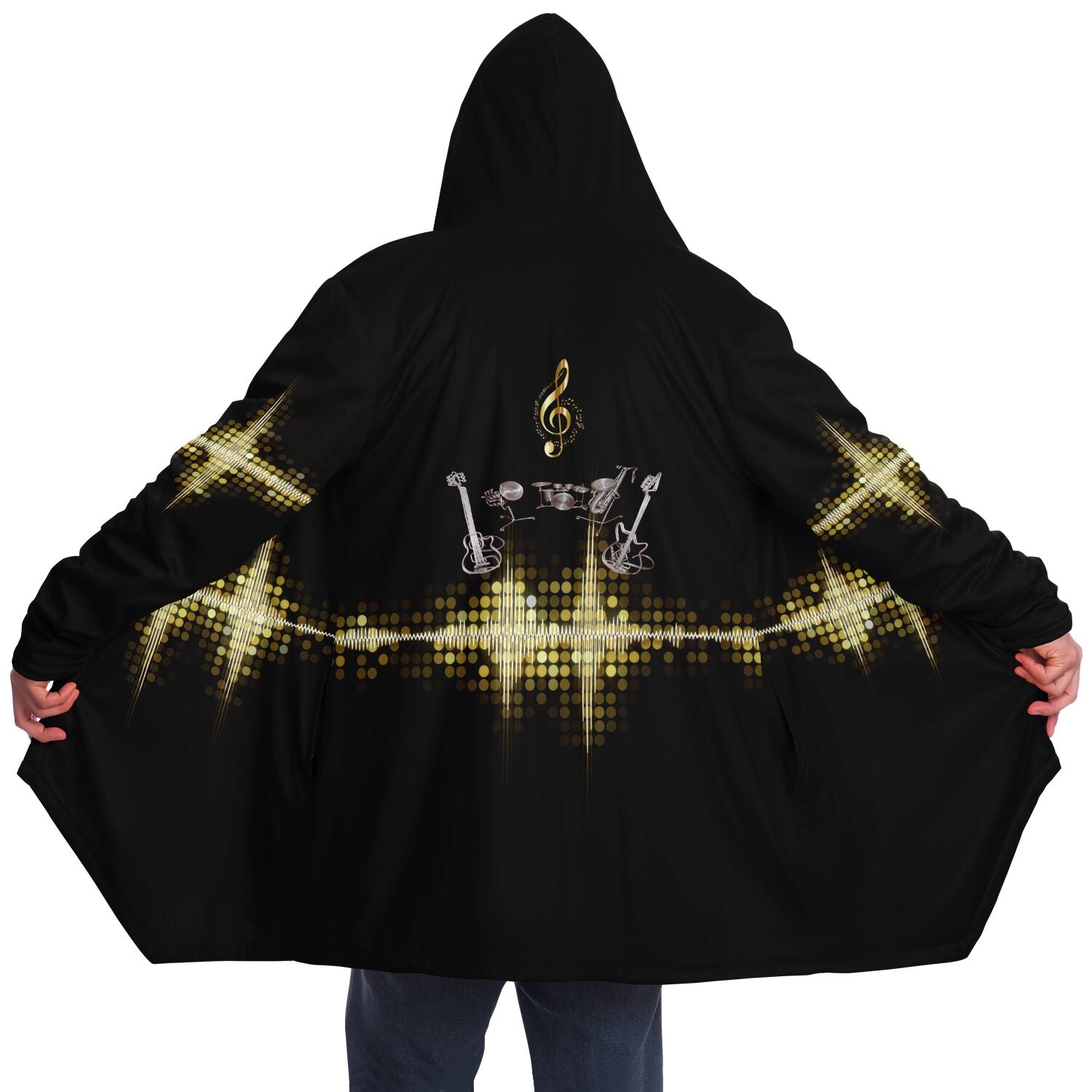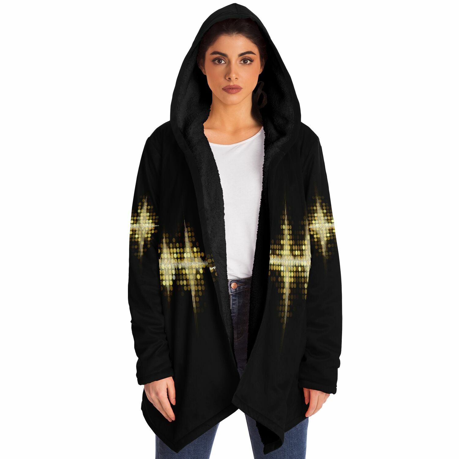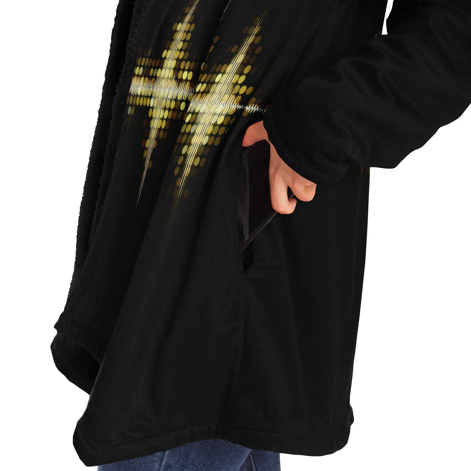 This luxurious cloak is made from an ultra-soft premium microfiber fleece lining. The outside is made with a micro-mink polyester fabric that allows the print to be high definition with vibrant colors. Featuring two deep side pockets to keep your belongings safe and your hands warm.