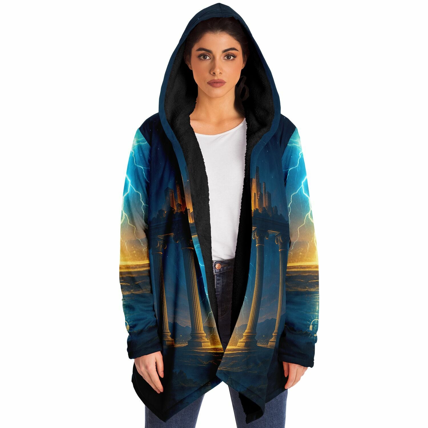 This luxurious cloak is made from an ultra-soft premium microfiber fleece lining. The outside is made with a micro-mink polyester fabric that allows the print to be high definition with vibrant colors. Featuring two deep side pockets to keep your belongings safe and your hands warm.
